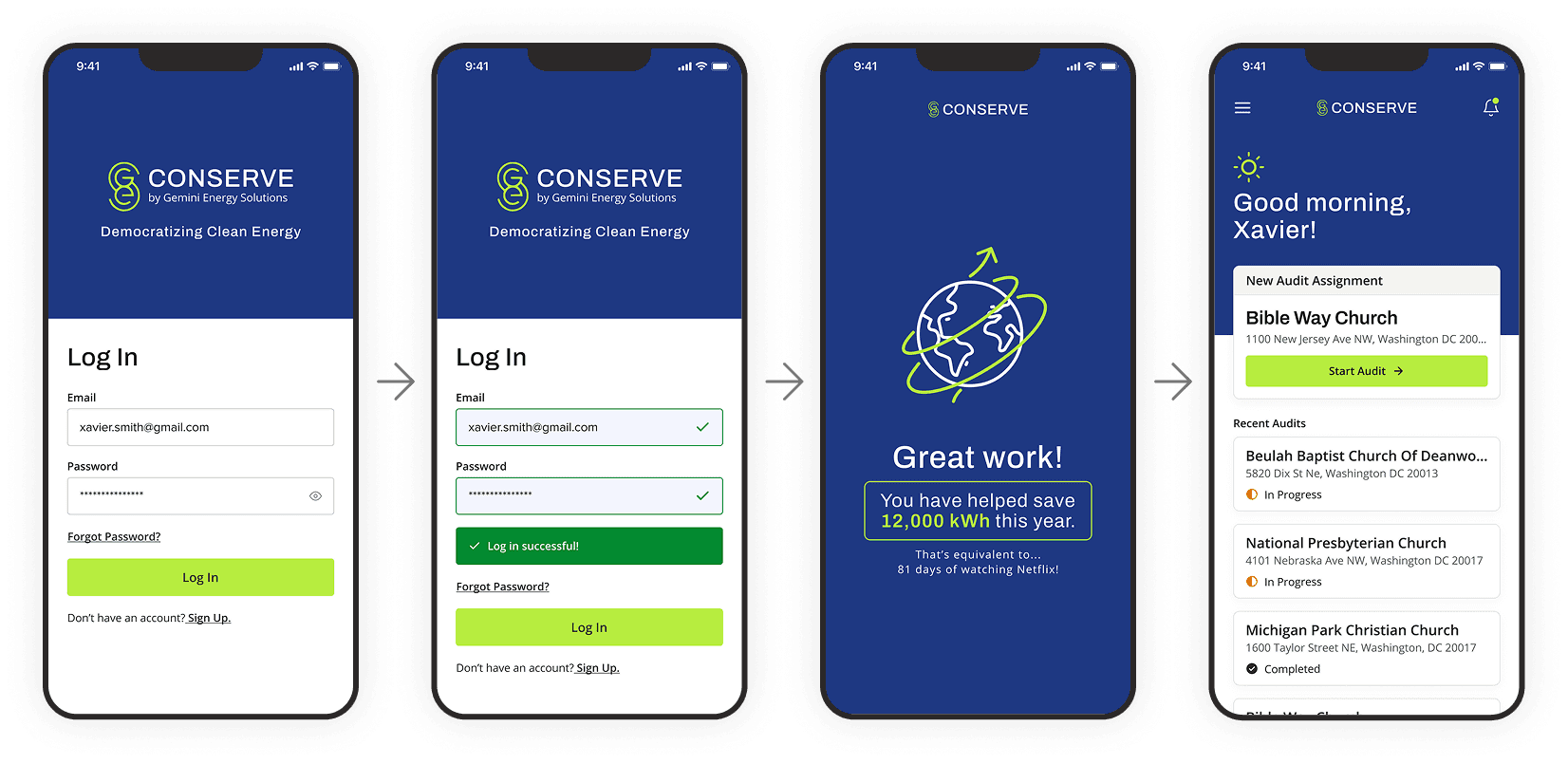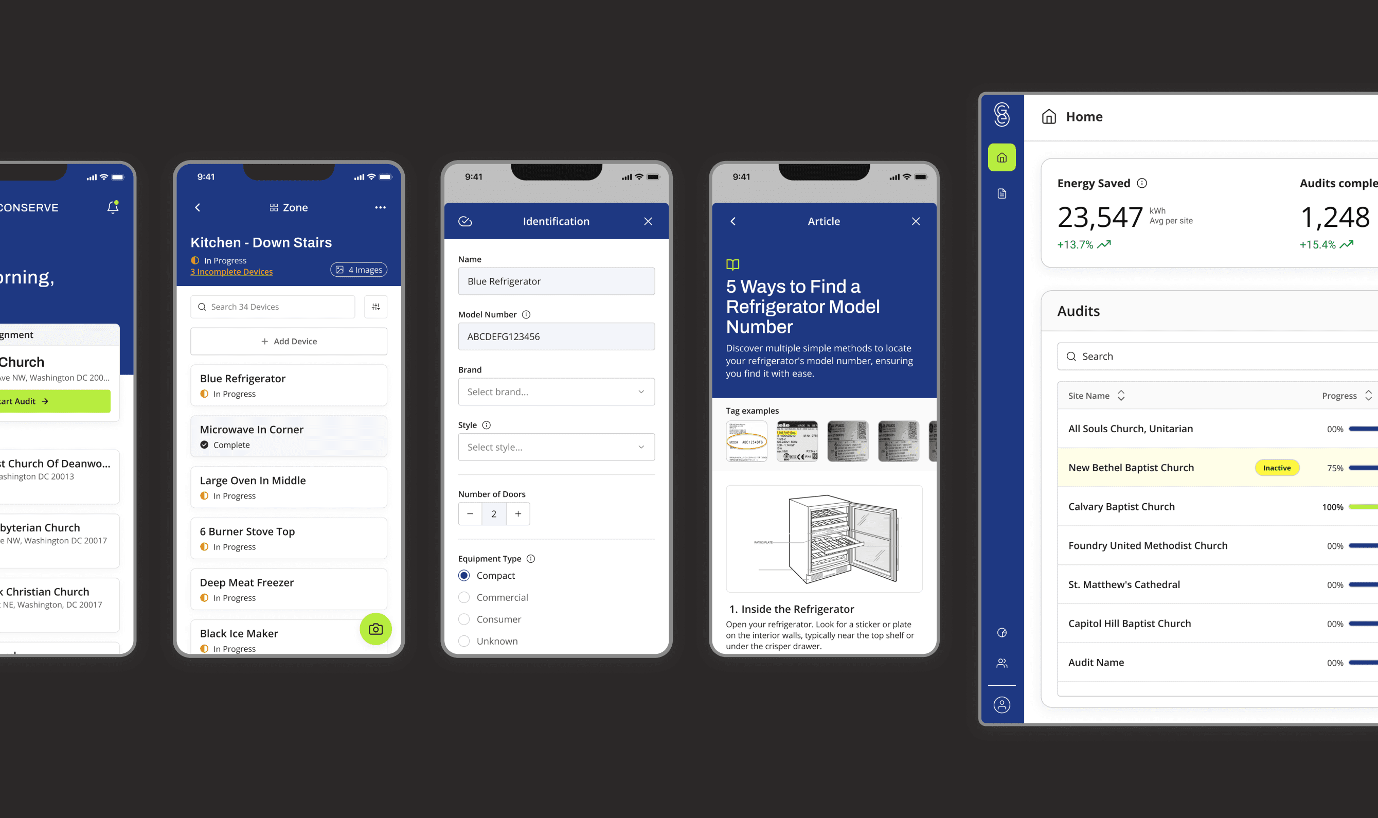 We began with a focused discovery phase: interviewing stakeholders, reviewing customer feedback, and researching the energy audit space to understand both user and business needs. I then audited the current Conserve app using heuristic and accessibility reviews, task walkthroughs, and responsive checks to map key pain points.