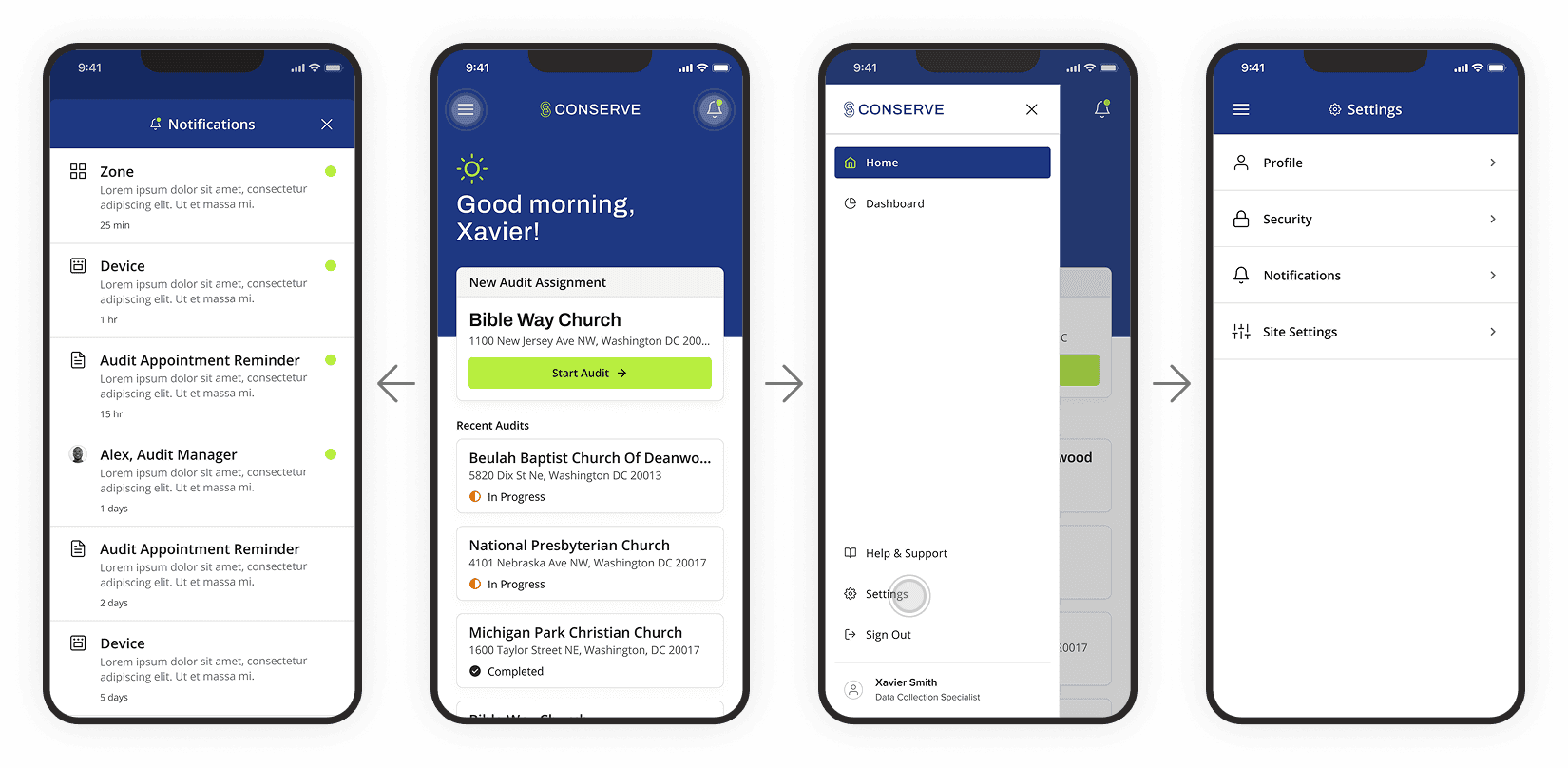 We imagined the mobile information and site architecture so Conserve feels like one coherent system instead of scattered screens. The new structure centers on a clearer home view and predictable navigation, giving auditors quick access to the work that matters most.